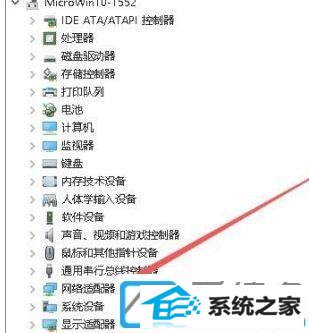 第三步:进入win7 64位装机版的设备管理器界面,下拉找到并点击【网络适配器】项。