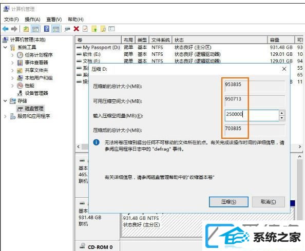 第五步:输入压缩空间量,根据自己的需要配置一下,单位MB,进行配置就可以了。电脑硬盘分区整数对照表