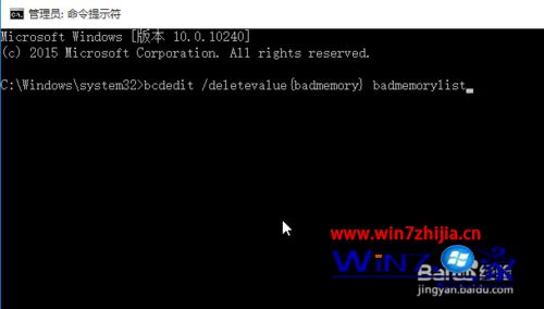 4、要清除这些标记只需要输入bcdedit /deletevalue {badmemory} badmemorylist命令回车即可。